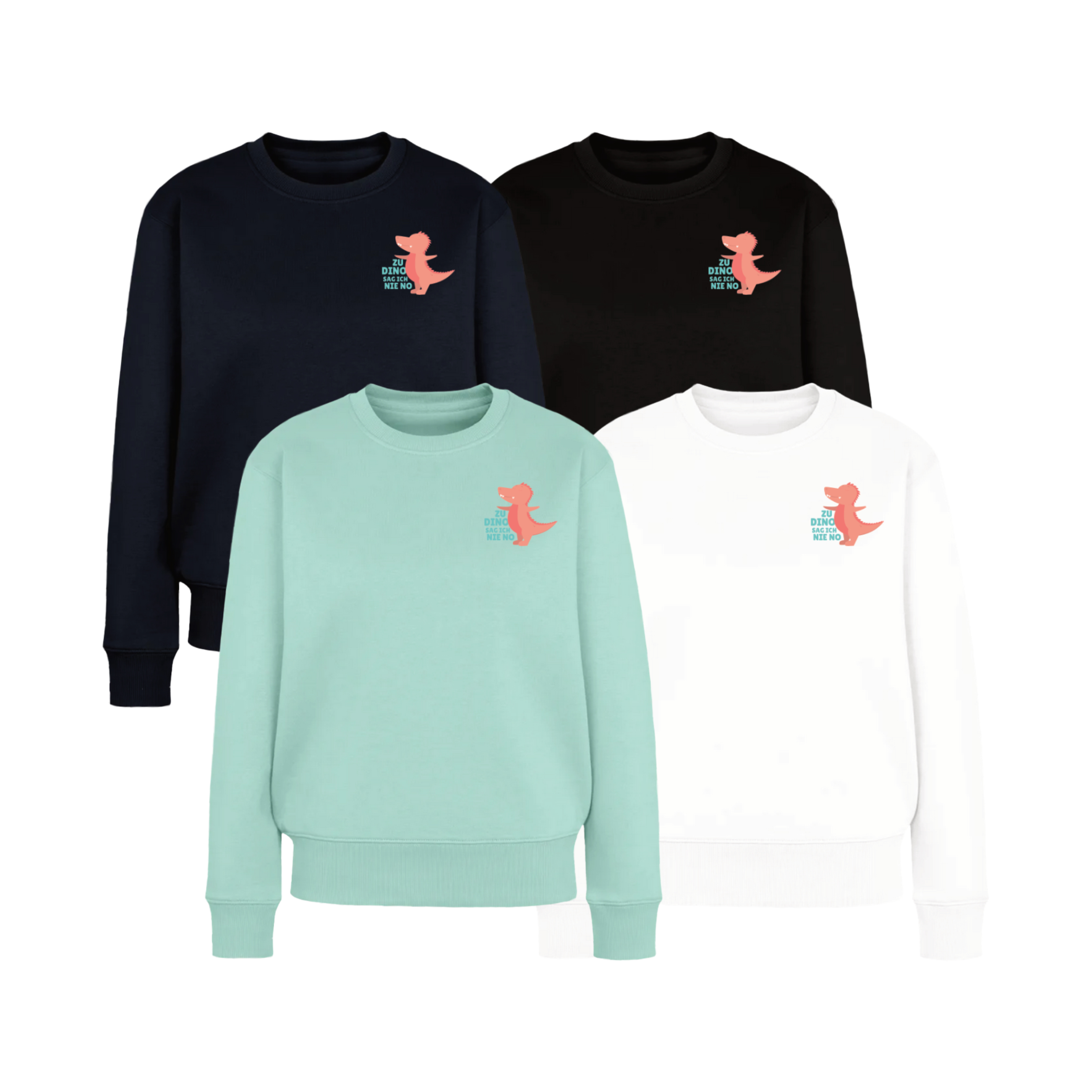 Das Motiv bieten wir euch auf einem kuscheligen Pullover mit klassischem Rundhals an, der aus 70% Bio-Baumwolle und 30% recyceltem Polyester besteht.