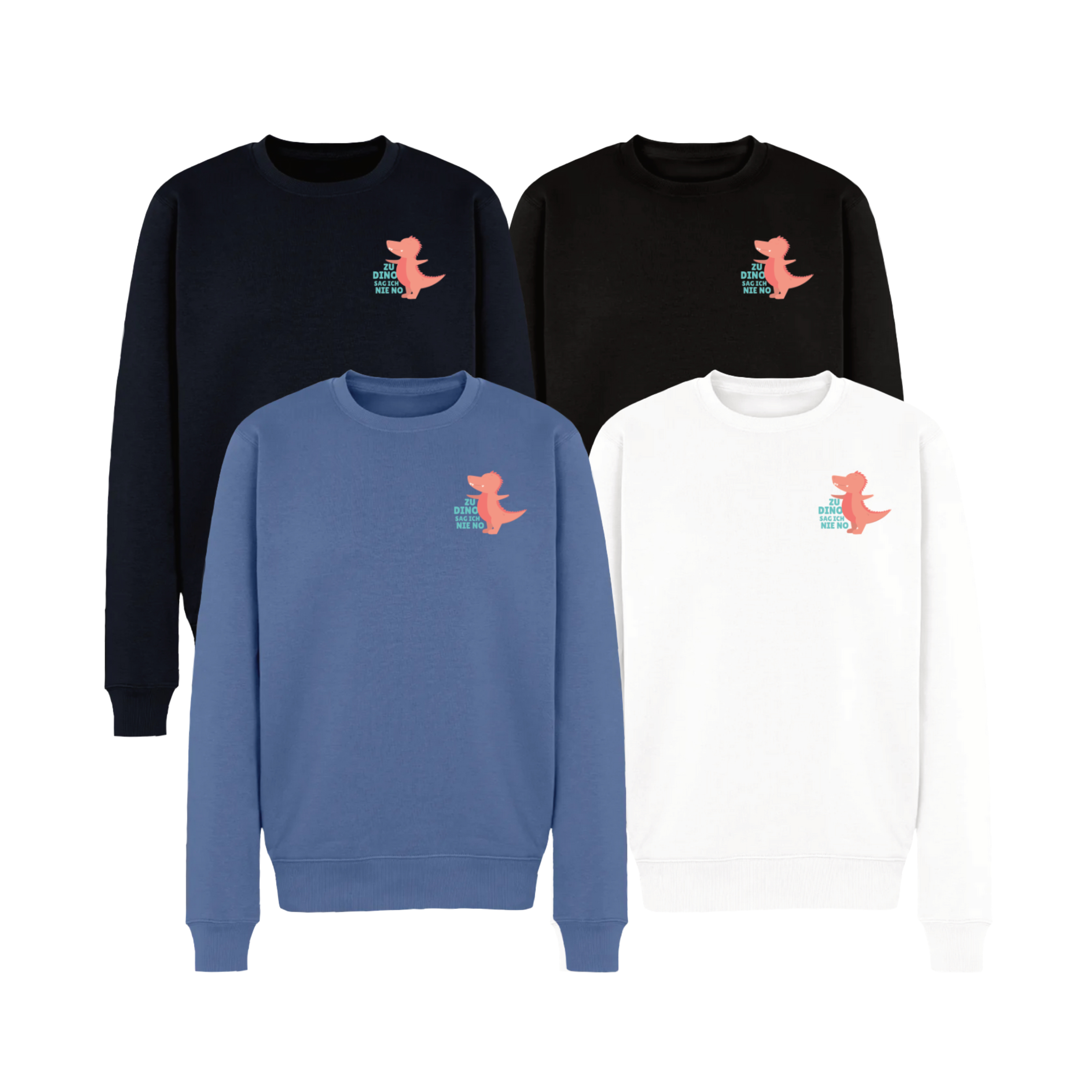 Das Motiv bieten wir euch auf einem kuscheligen Pullover mit klassischem Rundhals an, der aus 70% Bio-Baumwolle und 30% recyceltem Polyester besteht.